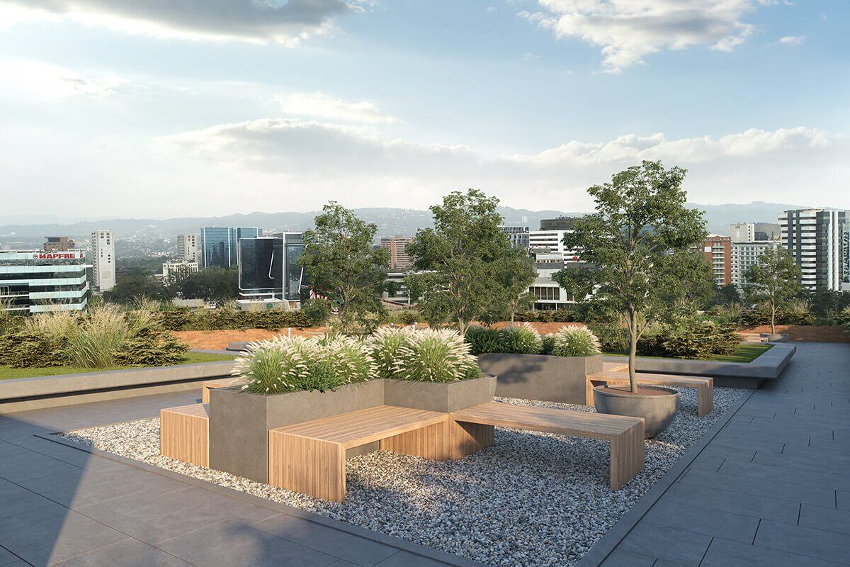 Ubicado en el distrito financiero de la ciudad. Rodeado de centros empresariales, Bancos, Restaurantes y Cafés, Centros Comerciales, Servicios, Parqueos, Transmetro, entre otros. A media cuadra de la Avenida Reforma con acceso fácil y rápido a distintos medios de transporte.